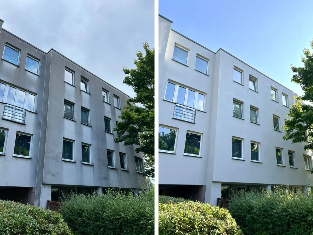 In Zeiten steigender Baukosten ist der effiziente Einsatz von Instandhaltungsrücklagen entscheidender denn je. Ein vorzeitiger Neuanstrich bindet Kapital, das an anderer Stelle im Objekt fehlt. Unser Ansatz ist anders: Wir reinigen die Substanz porentief und tragen einen langlebigen Schutz auf. Ihr Vorteil: Sie sanieren mit demselben Budget die drei- bis vierfache Fassadenfläche im Vergleich zu herkömmlichen Malerarbeiten. Das erhöht nicht nur sofort den Verkehrswert des gesamten Portfolios, sondern schafft auch finanziellen Spielraum für thermische Sanierungen oder technische Modernisierungen.